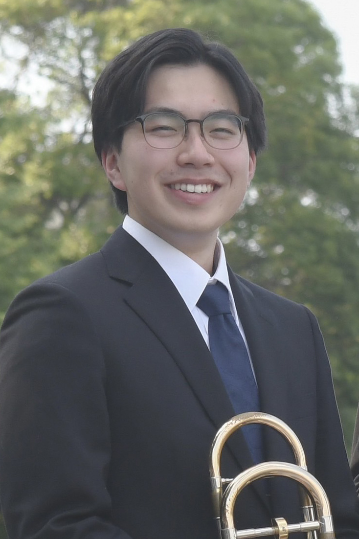 ’03年大阪生まれ。 幼少期よりテューバ奏者の父の手ほどきを受け、10歳よりテューバを始め、13歳からトロンボーンを始める。 ’17年にニューヨークフィル副首席のコリン・ ウィリアムズ氏のプライベートレッスンを受講。 ’22年にニューヨークフィル首席のジョセフ・アレッシ氏のオンラインレッスンを受講。 ’22年2月第6回 名古屋トロンボーンコンペティション 一般部門 1位 ’22年8月第25回 松方ホール音楽賞の金管部門にて音楽賞を受賞し優勝、史上最年少受賞。